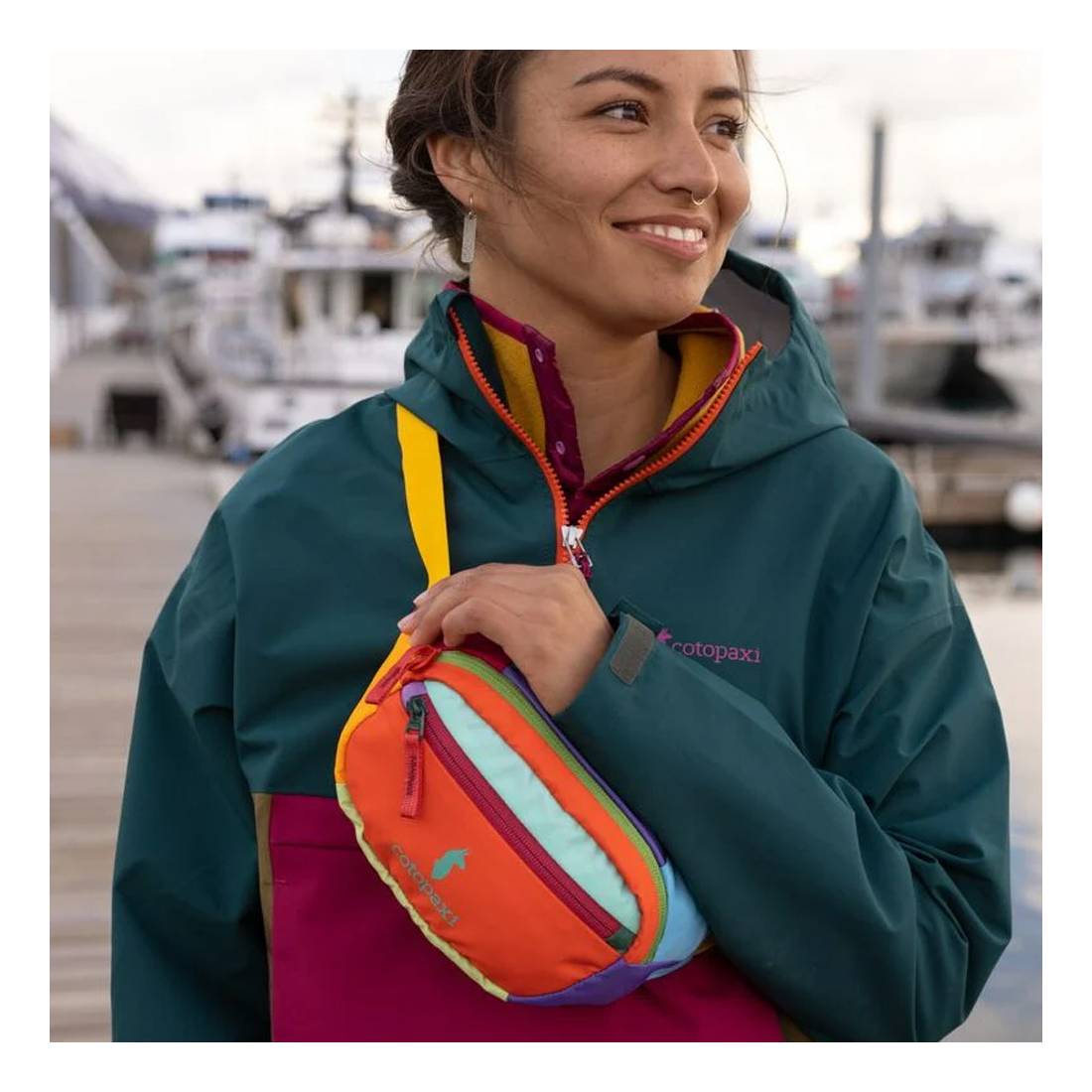 La mochila Cotopaxi Kapai 1.5L Hip Pack - Del Dia es la nueva y bonita bolsa de cinturón. Con un gran compartimento principal y un bolsillo frontal con cremallera para los accesorios, la Kapai 1.5L es perfecta para el uso diario, para llevar lo esencial. Es única y está fabricada con tejido 100% reciclado.