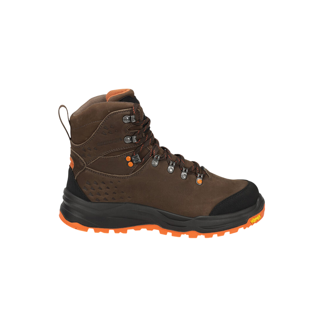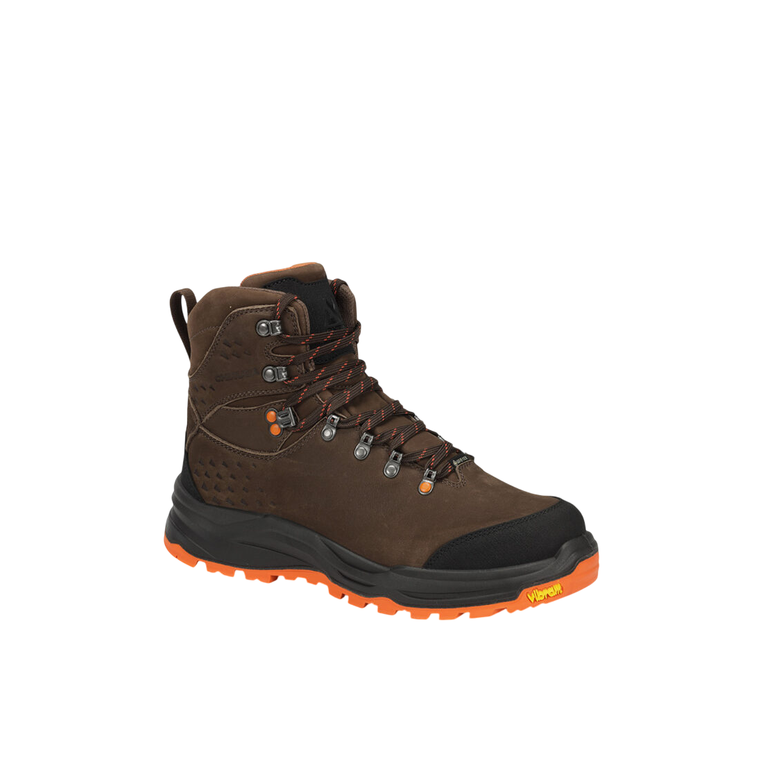 Bota con grandes prestaciones de piel nobuck hidrofugada, cordura hidrofugada, refuerzo en puntera, detalles en alta visibilidad, membrana Gore-Tex impermeable y transpirable; piso bidensidad con entresuela de poliuretano y patín de caucho Vibram® Iron que proporciona amortiguación y adherencia.