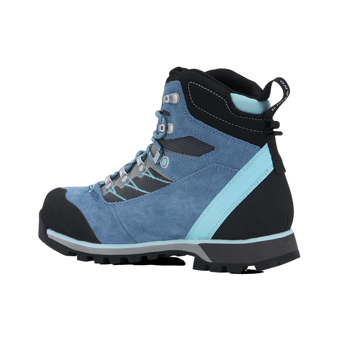 Bota ligera pero bien estructurada, diseñada para senderos mixtos de montaña, incluso con cargas medias. La parte superior está fabricada en piel de ante resistente y tejido sintético que aumenta la ventilación y envuelve de forma óptima el pie, gracias a su horma. específico para senderismo.