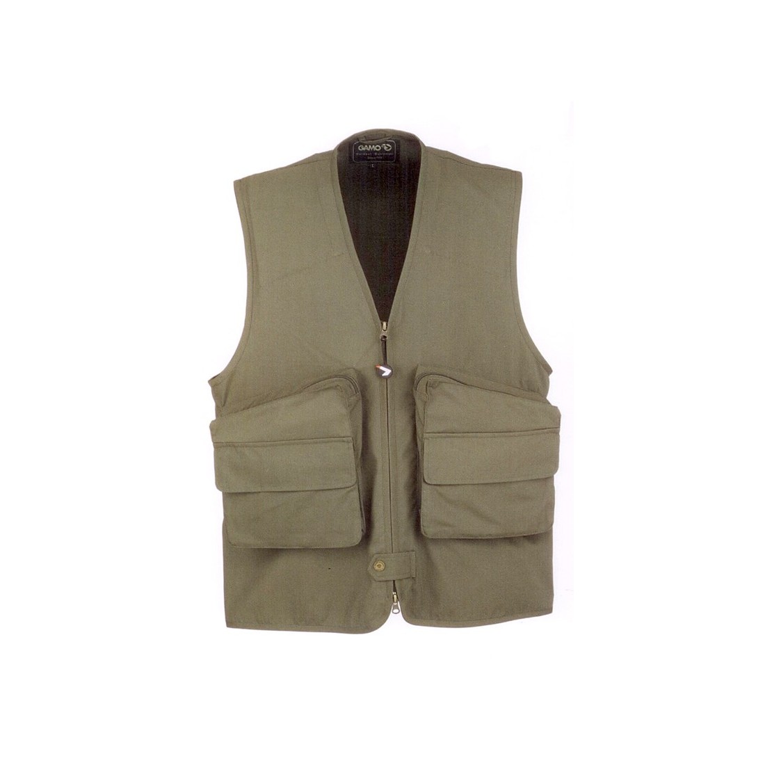 • Chaleco de caza liegero con gran capacidad de bolsillos y doble cremallera frontal