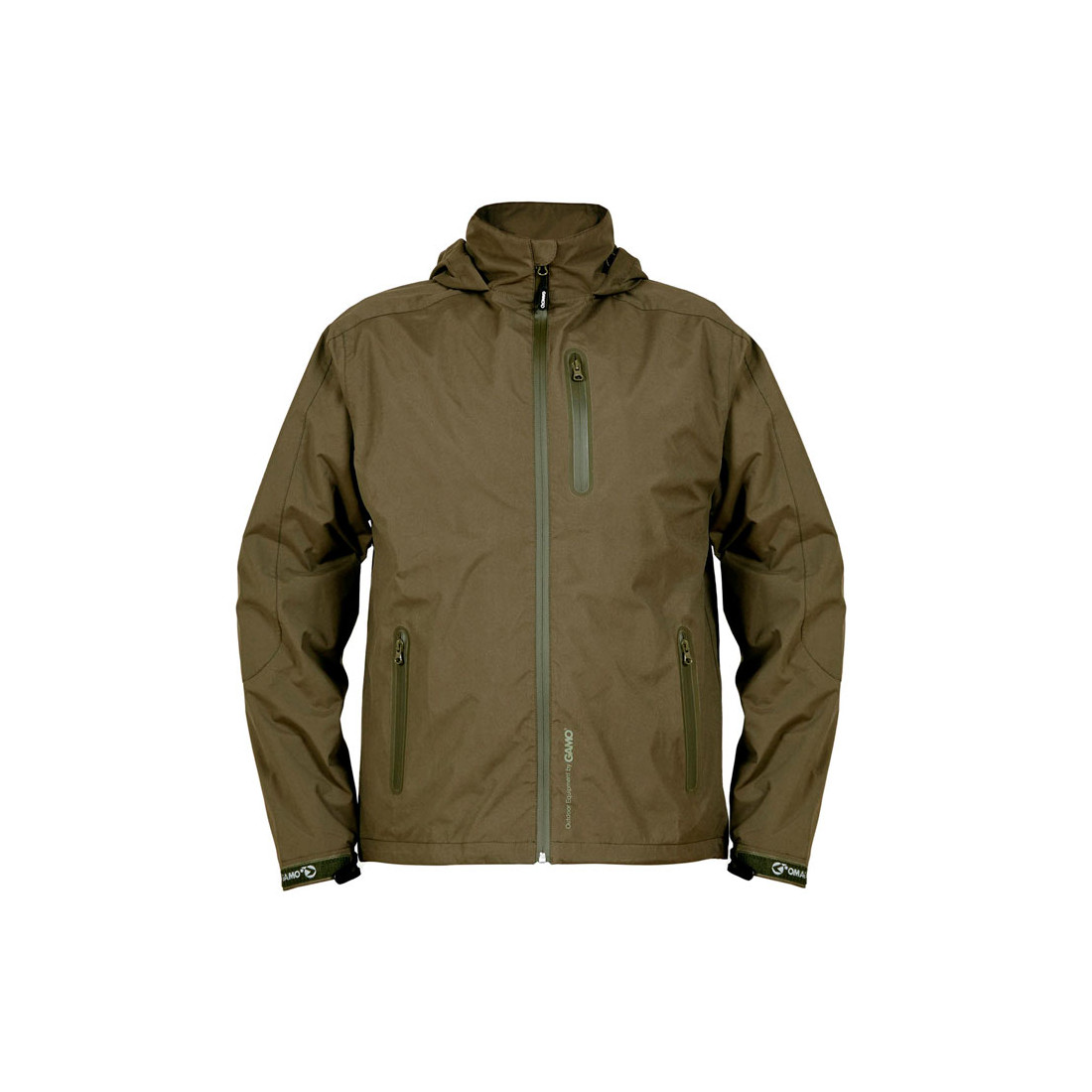 Cuenta con un forro de red, capucha plegable en el cuello, puños y bajos ajustables y cremalleras termo selladas para proteger la entrada de agua.