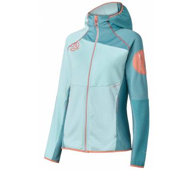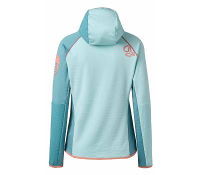 Segunda capa con capucha, transpirable y de secado rápido, hecha en tejido reciclado DRYSHELL. Con bolsillos con cremallera, costuras planas y tratamiento DWR. Ideal para actividades todo el año, ofrece libertad de movimiento y resistencia al pilling.