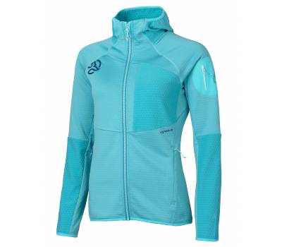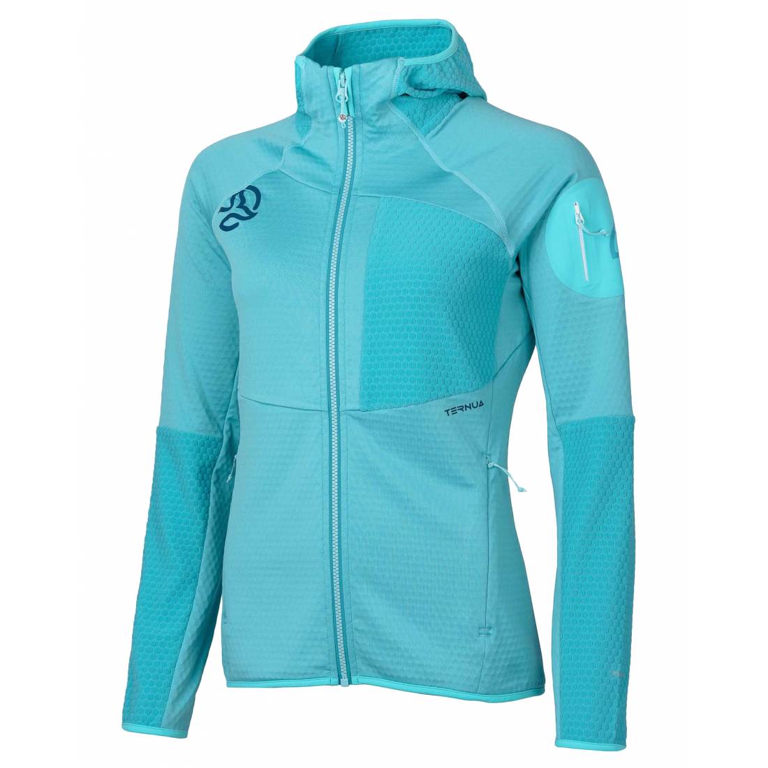 Segunda capa con capucha, transpirable y de secado rápido, hecha en tejido reciclado DRYSHELL. Con bolsillos con cremallera, costuras planas y tratamiento DWR. Ideal para actividades todo el año, ofrece libertad de movimiento y resistencia al pilling.