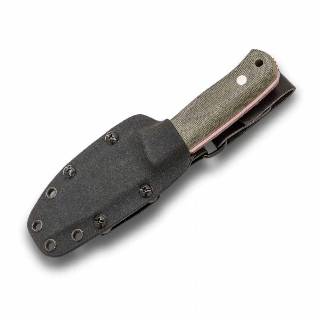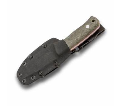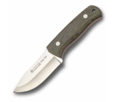 CV142 Cuchillo de monte o machete de Joker modelo Erizo TS2, hoja de acero böhler N695, con denominación de origen AB, mango de mikarta canvas verde con separadores rojos, remachado, toda una pieza que se ve por donde va, tamaño hoja 9,5 cm, mango de 10 cm, ancho de pala 3,6cm, grosor 3,8 mm, peso 195 gr, con funda de Kydex