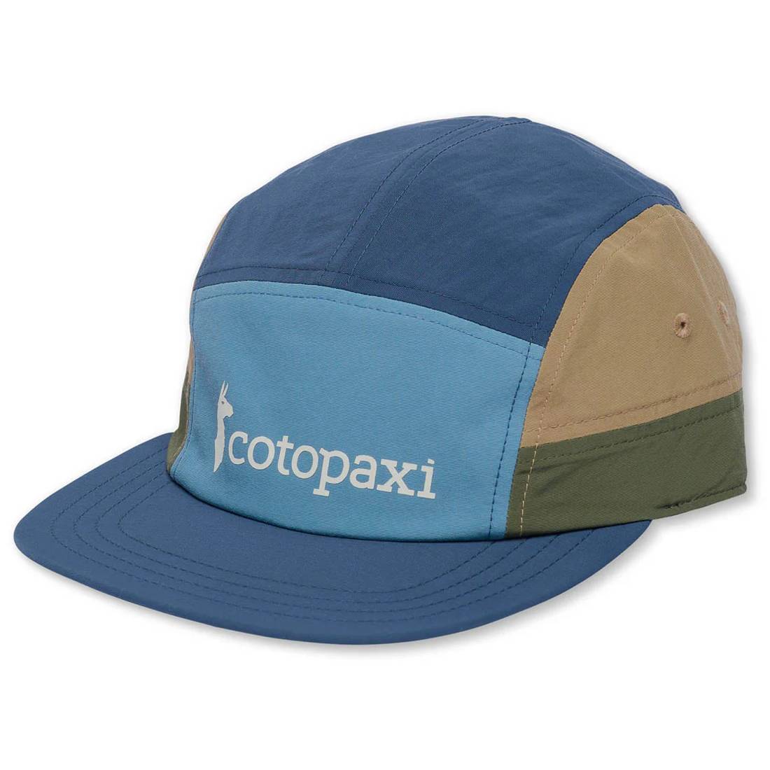colorida Gorra de cinco paneles con la identidad de la marca, el logotipo Tech 5 Pannel Hat Fig and Jam de la marca Cotopaxi proclama su misión de causar impacto e inspira a otros a hacer lo mismo.