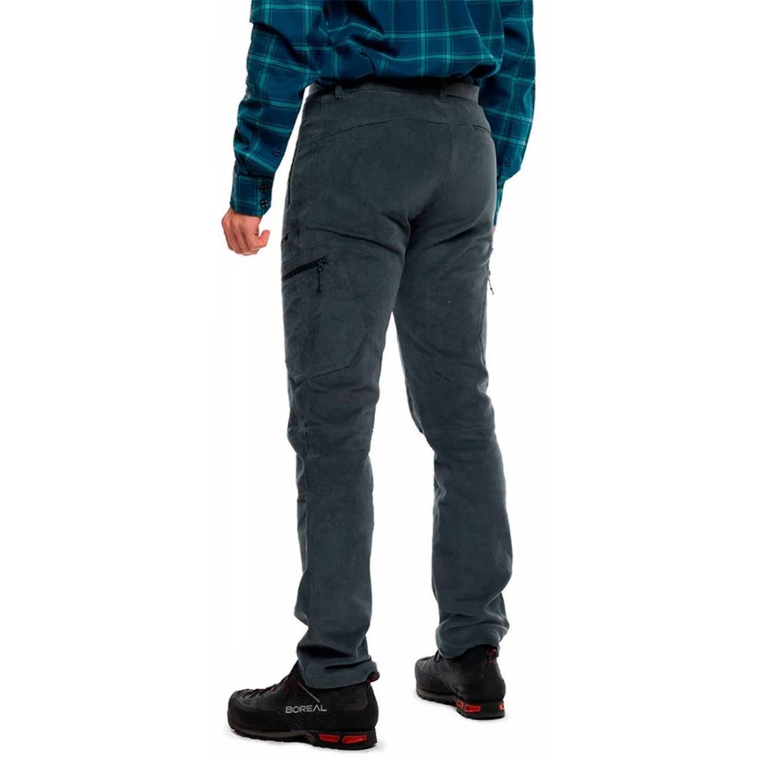 Pantalón confeccionado con algodón y elastán, ideal para senderismo y montaña. Tiene una cintura con elástico y cinturón, rodillas conformadas y patrón en V. Incluye bolsillos laterales con cremallera vista, bolsillos horizontales en pernera con cremallera y un bolsillo trasero con cremallera.