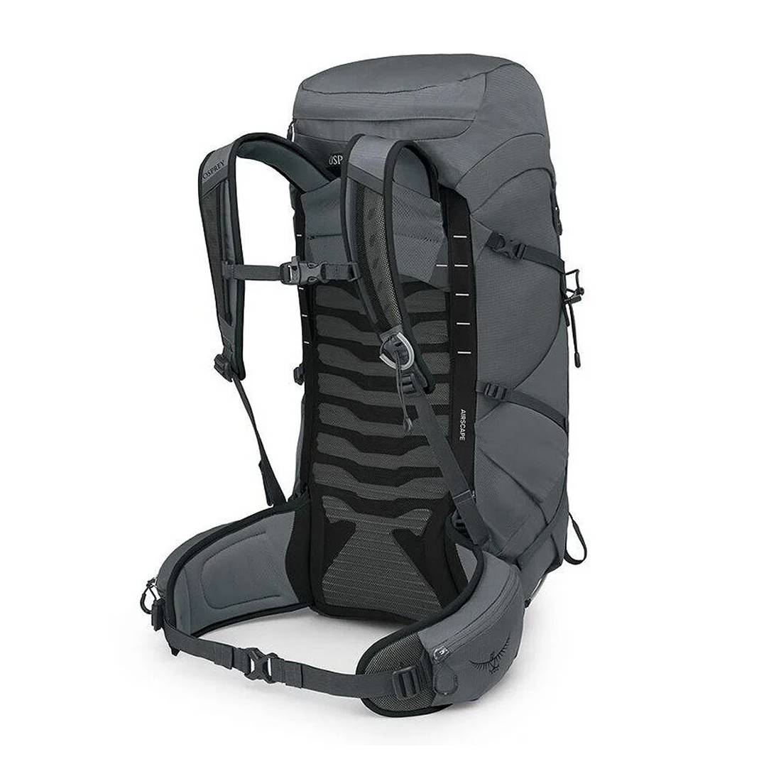 El respaldo AirScape™ de espuma troquelada y moldeado por inyección se adapta al cuerpo y ofrece una gran transpirabilidad. Las hombreras y cinturón lumbar flexibles BioStretch con cinturón continuo facilitan un movimiento dinámico.