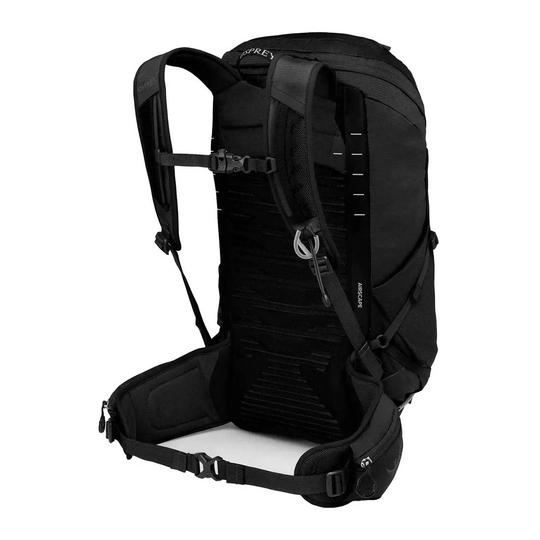 El respaldo AirScape™ de espuma troquelada y moldeado por inyección se adapta al cuerpo y ofrece una gran transpirabilidad. Las hombreras y cinturón lumbar flexibles BioStretch con cinturón continuo facilitan un movimiento dinámico.