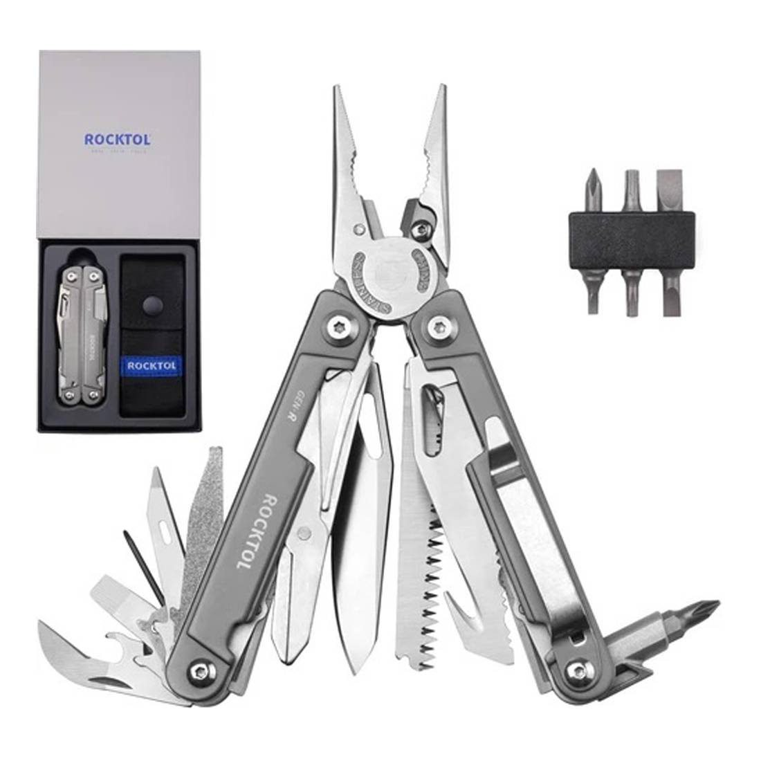 Multiherramienta 27 en 1: Esta multiherramienta incluye una amplia gama de herramientas para diversas tareas, incluidos destornilladores de punta plana y Philips de 1,5 mm , especialmente para instrumentos precisos como cámaras digitales, accesorios y gafas. También cuenta con tijeras grandes con resorte , sierra, hoja dentada con gancho para destripar.