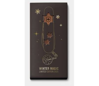 La Winter Magic 2025 es una pieza coleccionable que encarna la individualidad en su máxima expresión y destaca por su perfil único. Destacando por su detallada maestría artesanal suiza y precisión técnica, combina funcionalidad y creatividad. Con un diseño exclusivo que evoca la magia del invierno, la pieza retrata árboles alpinos nevados, grabados con técnica láser sobre cachas de madera de peral. El dije desmontable a juego refuerza su atractivo como regalo. Con solo 10,000 piezas disponibles para todo el mundo, es un recuerdo único por coleccionar.