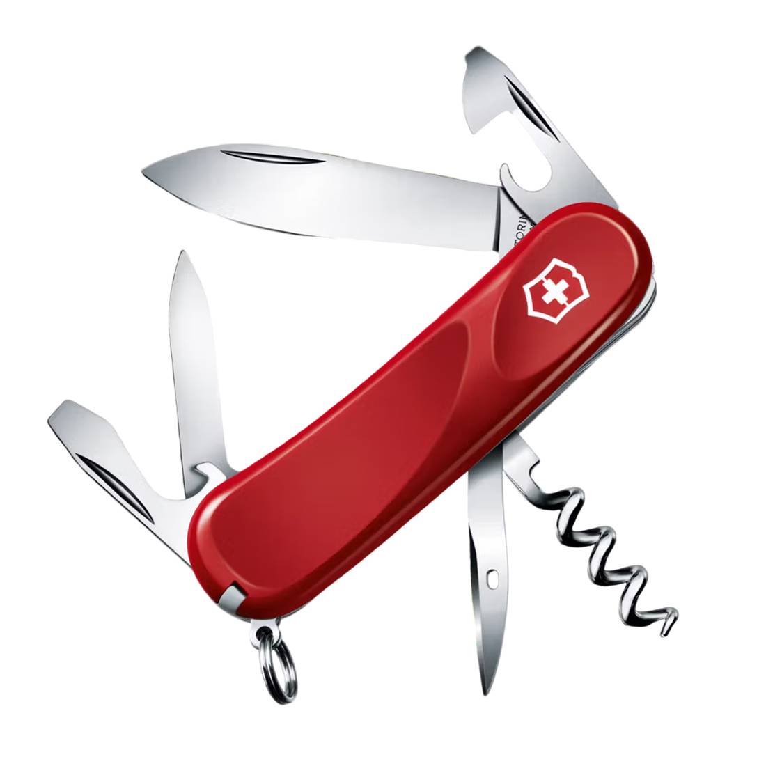 Hoja grande / Sacacorchos / Abrelatas / Punzón, escariador y aguja de coser / Destapador / Pinzas / Anilla / Palillo de dientes / Lima de uñas