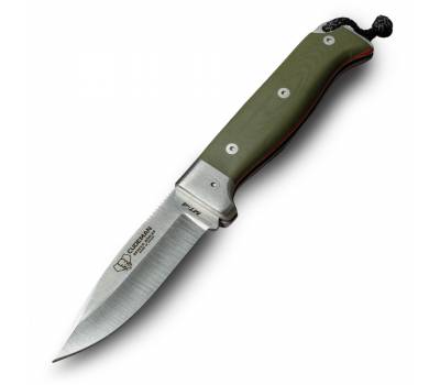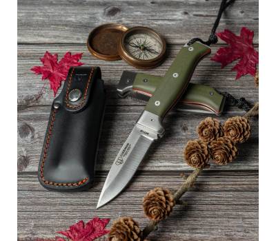 Su sistema de cierre de bloqueo trasero y el anclaje del mango mediante tornillo allen inoxidable y casquillo interior roscado de latón, brindan seguridad extra durante su manipulación. El mango de G10 verde con separador naranja asegura un agarre cómodo y firme, incluso en condiciones adversas.