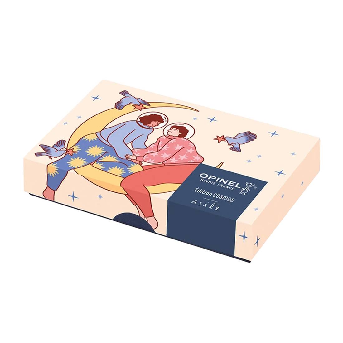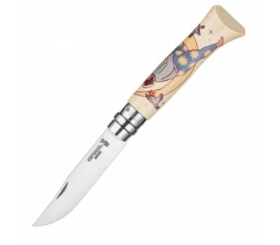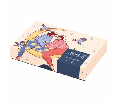 La navaja lleva un mango de carpe con certificado PEFC y decoración por sublimación, así como una hoja de acero inoxidable de 8,5 cm. Hecha en Francia, viene además con una bonita caja y una tarjeta postal.