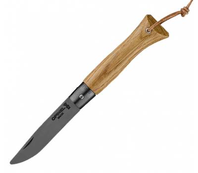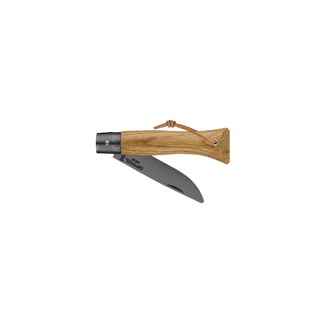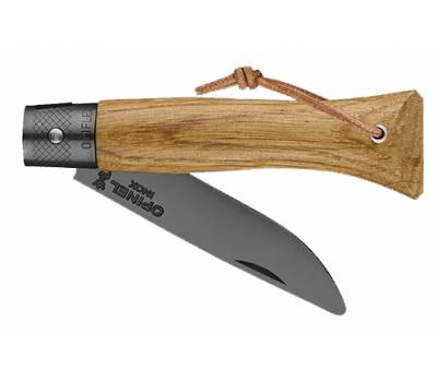 Práctica y tranquilizadora, la néo6 roble black tiene una hoja de 7 cm en acero inoxidable con punta levemente redondeada. Su mango con perfil ergonómico es de roble. El nuevo e ingenioso mecanismo Opiflex® facilita la apertura y cierre del cuchillo, sin bloqueo ni manipulación. El acabado en PVD negro en la hoja y el Opiflex® aportan un toque sofisticado. La correa de cuero natural permite colgarla fácilmente