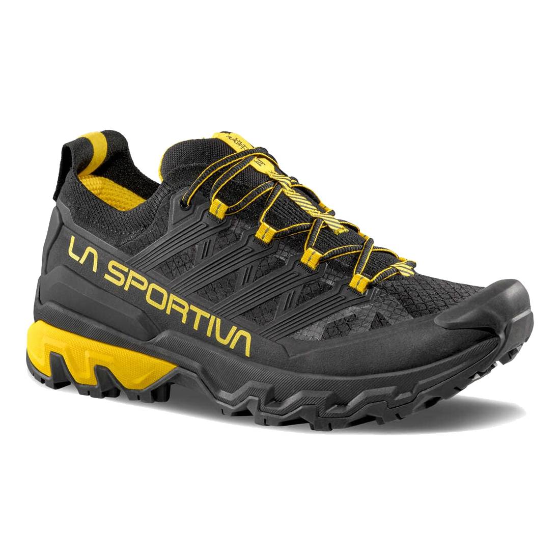 La Sportiva Ultra Raptor 3 para Hombre. Zapatillas de Senderismo Técnicas, Ligeras y Resistentes. Las La Sportiva Ultra Raptor 3 para hombre son unas zapatillas de senderismo de un día diseñadas para ofrecer máxima estabilidad, agarre y confort prolongado en rutas de montaña y terrenos técnicos. Fabricadas en Italia y desarrolladas con tecnologías exclusivas de la marca, este modelo combina rendimiento, durabilidad y materiales sostenibles para acompañarte en cada aventura outdoor. Ideales para senderistas exigentes, trekking ligero y caminatas en terrenos mixtos, las Ultra Raptor 3 Black destacan por su equilibrio entre protección, ligereza y libertad de movimiento. El sistema de cordones clásico permite un ajuste firme y personalizado, adaptándose perfectamente a la anatomía del pie. Su diseño de caña baja favorece la movilidad del tobillo sin comprometer la estabilidad. El separador ligero interno garantiza sujeción y comodidad desde la mañana hasta la noche, reduciendo la fatiga en largas jornadas de senderismo. El empeine está fabricado con malla reciclada transpirable, que mantiene el pie ventilado incluso en días cálidos, al mismo tiempo que reduce el impacto medioambiental. Para una mayor protección en terrenos irregulares, incorpora: Puntera reforzada, resistente a impactos contra piedras. Revestimiento de caucho duradero, que protege frente a raíces, rocas y obstáculos del sendero. Entresuela de EVA sostenible, ligera y amortiguadora. Este equilibrio entre protección y ligereza convierte a las Ultra Raptor 3 en una excelente opción para rutas técnicas y terrenos exigentes. Tecnología avanzada para máximo rendimiento. Las zapatillas integran tecnologías exclusivas de La Sportiva que mejoran la experiencia en montaña: IMPACT BRAKE SYSTEM, sistema innovador que absorbe los impactos y mejora la tracción en descensos, aumentando la seguridad en superficies irregulares. FRIXION WHITE, compuesto de suela superadherente, antihuellas y de alta durabilidad, que ofrece un excelente agarre en diferentes tipos de terreno. ORTHOLITE ecológica, plantilla exclusiva que mejora significativamente la amortiguación y la comodidad durante todo el día, además de favorecer la transpirabilidad. Estabilidad, tracción y libertad de movimient, con un talón de 35 mm, metatarso de 27 mm y un drop de 8 mm, este modelo proporciona un apoyo equilibrado y cómodo. Los tacos de 4,5 mm aseguran una tracción eficaz en senderos de tierra, roca y superficies mixtas. Además, las ranuras flexibles a lo largo de la suela permiten una pisada natural y mayor libertad de movimiento. Con un peso aproximado de 355 grs., estas zapatillas ofrecen una combinación perfecta entre robustez y ligereza.